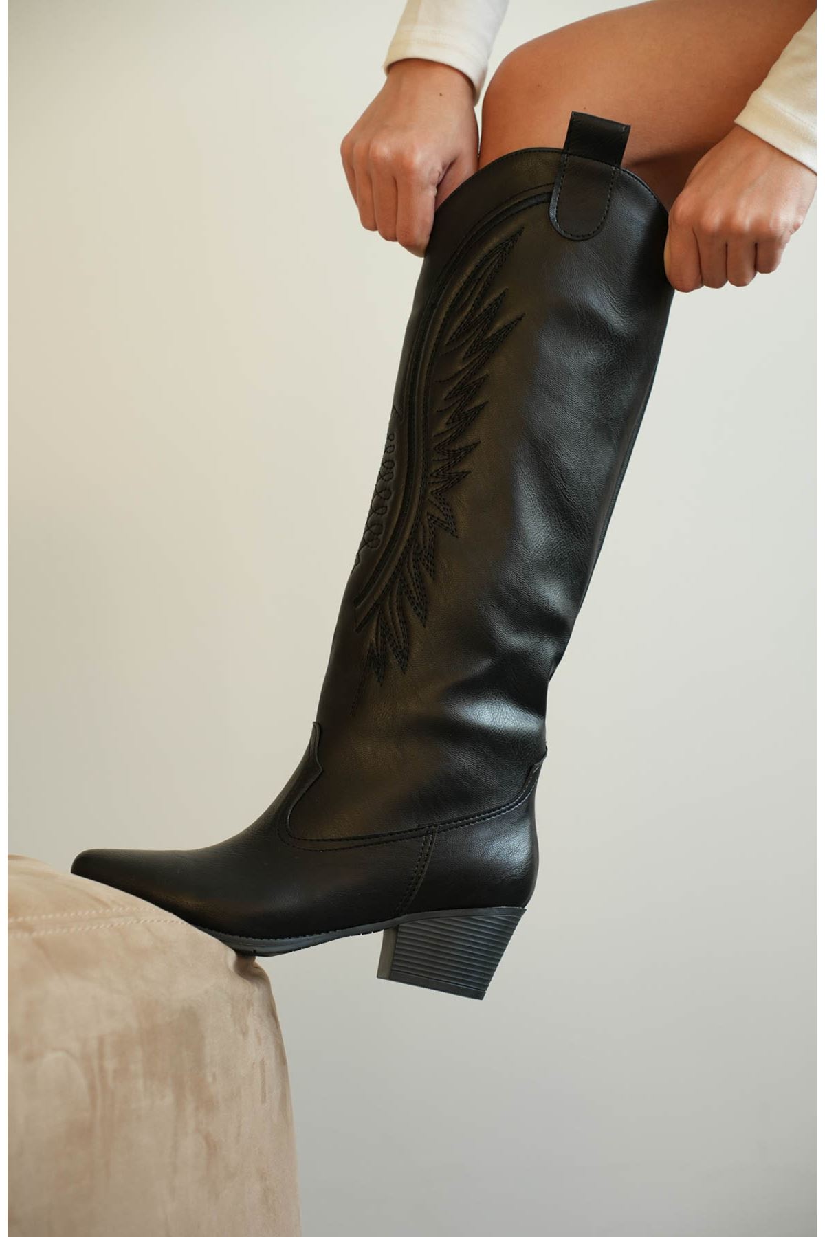 Kadın Umke Kovboy Çizme - siyah-deri