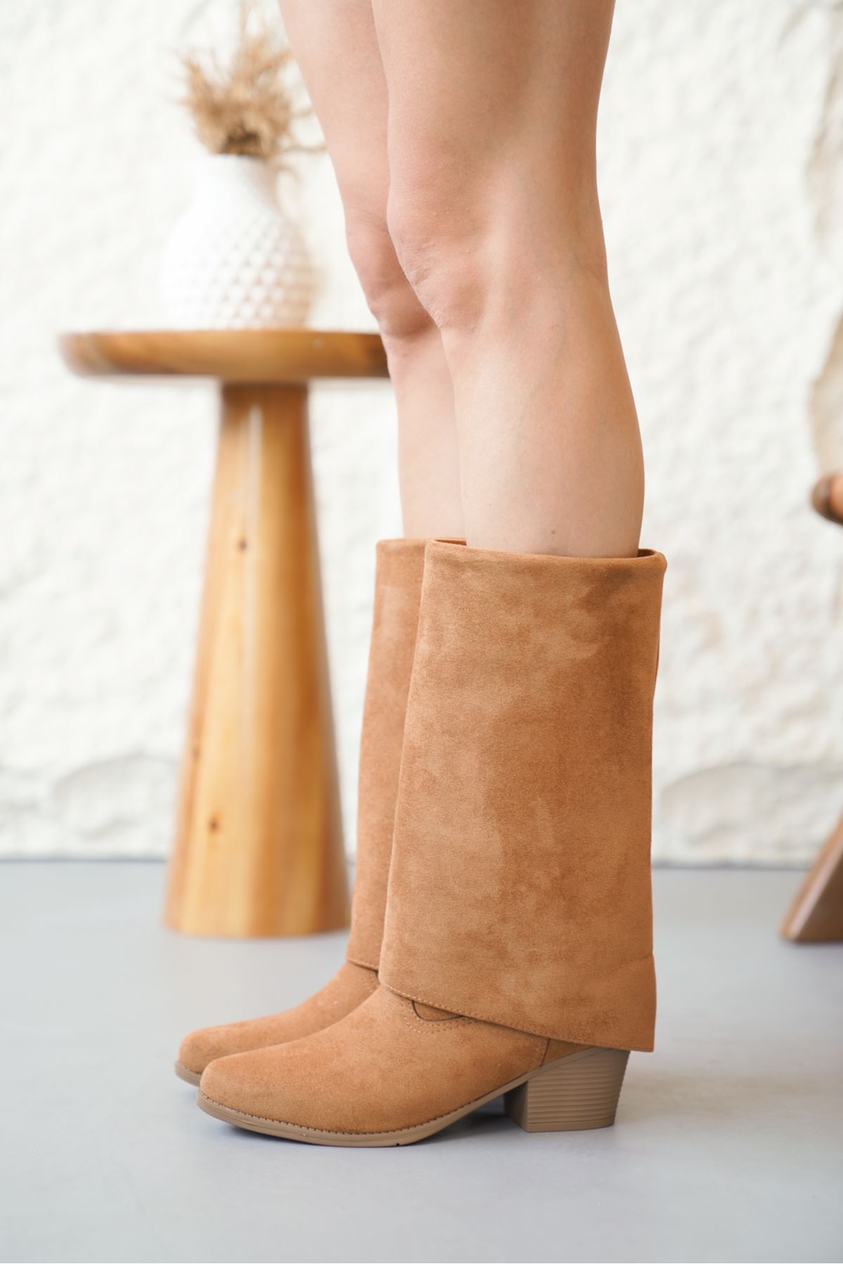 Kadın Vien Kovboy Çizme - Taba Süet