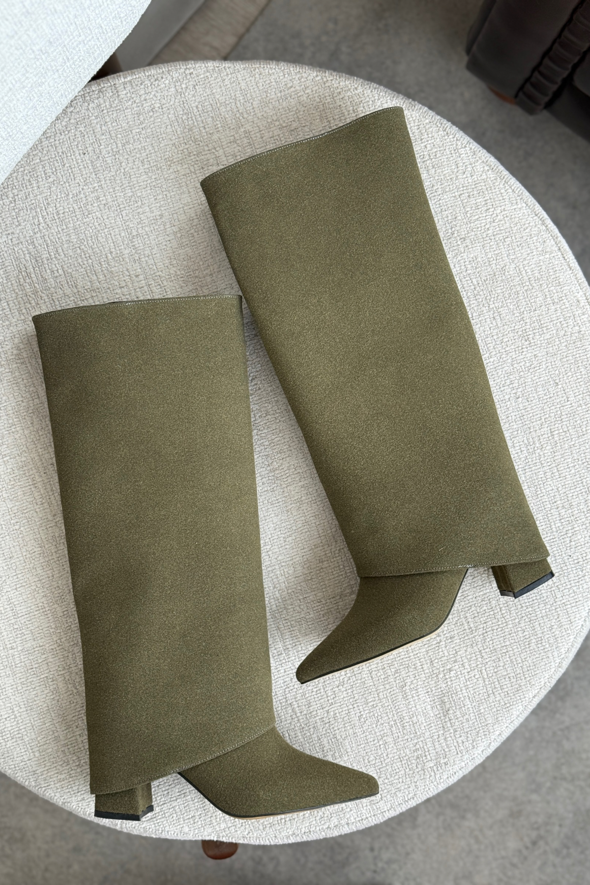 Kadın Wanda Tak Çıkar Çizme - Yeşil-Süet