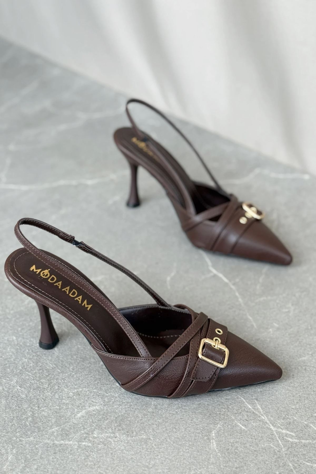 Kadın Wille İnce Topuklu Ayakkabı - Kahve-Deri