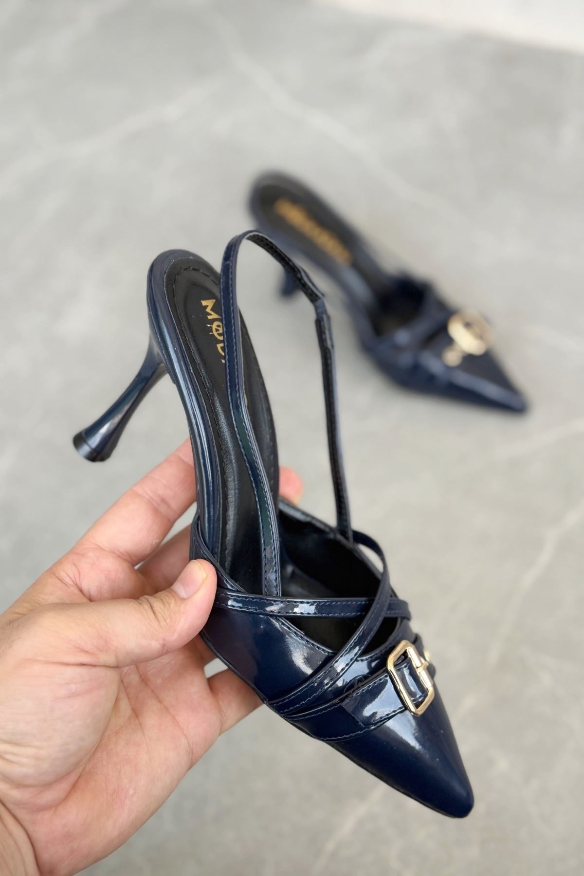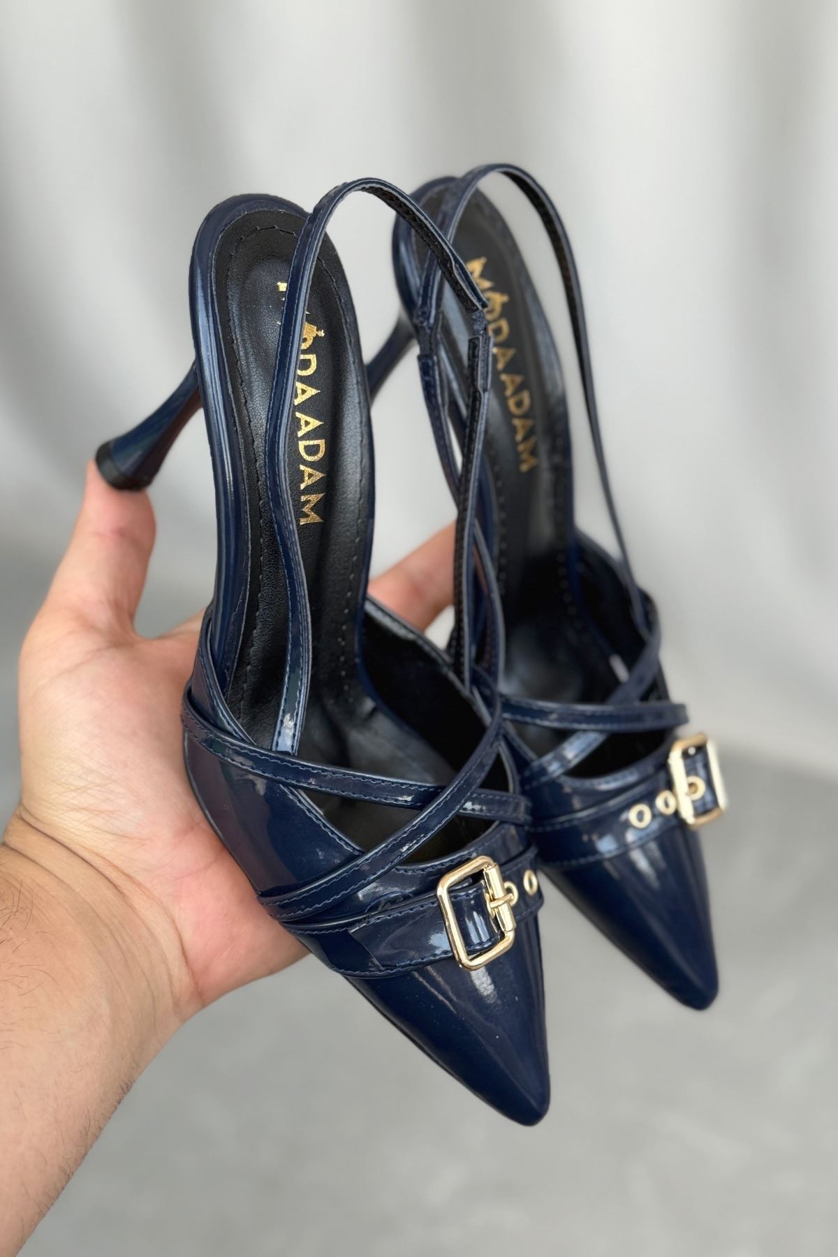 Kadın Wille İnce Topuklu Ayakkabı - Lacivert-Rugan